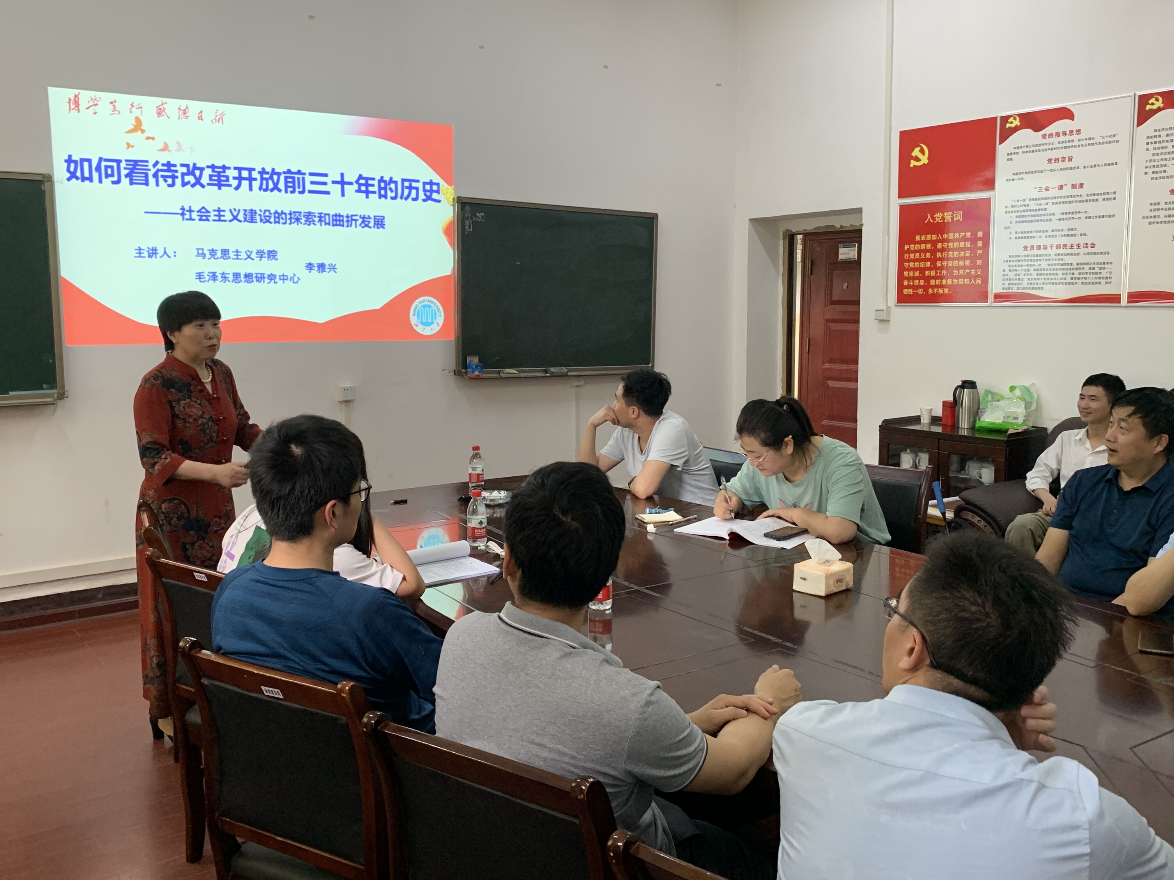 改革开放前的历史是我们党领导人民进行社会主义革命和建设并取得巨大成就的历史,不能因为发展过程中遭遇到了一些重大曲折就全盘否定; “要坚持用历史唯物史观来认识历史,坚持实事求是的思想路线,分清主流和支流,坚持真理,修正错误,发扬经验,吸取教训”(习近平语)。通过对1949-1978年期间的历史学习,党员们在课后表示对党的建设史和发展史认识更深刻了,同时感受到在习近平新时代中国特色社会主义时期更要同心同德、对党忠心,增强教书育人本领和科技创新能力,为实现中华民族伟大复兴积极贡献。