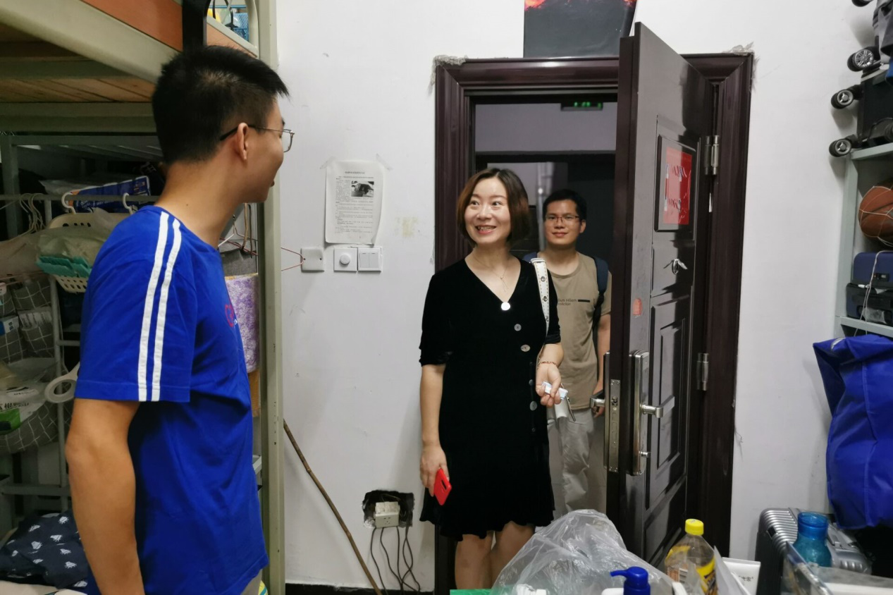 陈玉莹书记来到琴湖18栋寝室,查看了公司2019级员工的居住环境,并给员工们带来了即将改善生活环境的好消息——“公司十分关心大家生活状况,目前已经为同学们争取到更加舒适的居住条件,希望同学们克服暂时的困难,认真学习,争取在新的学期取得更好的学业成绩。”