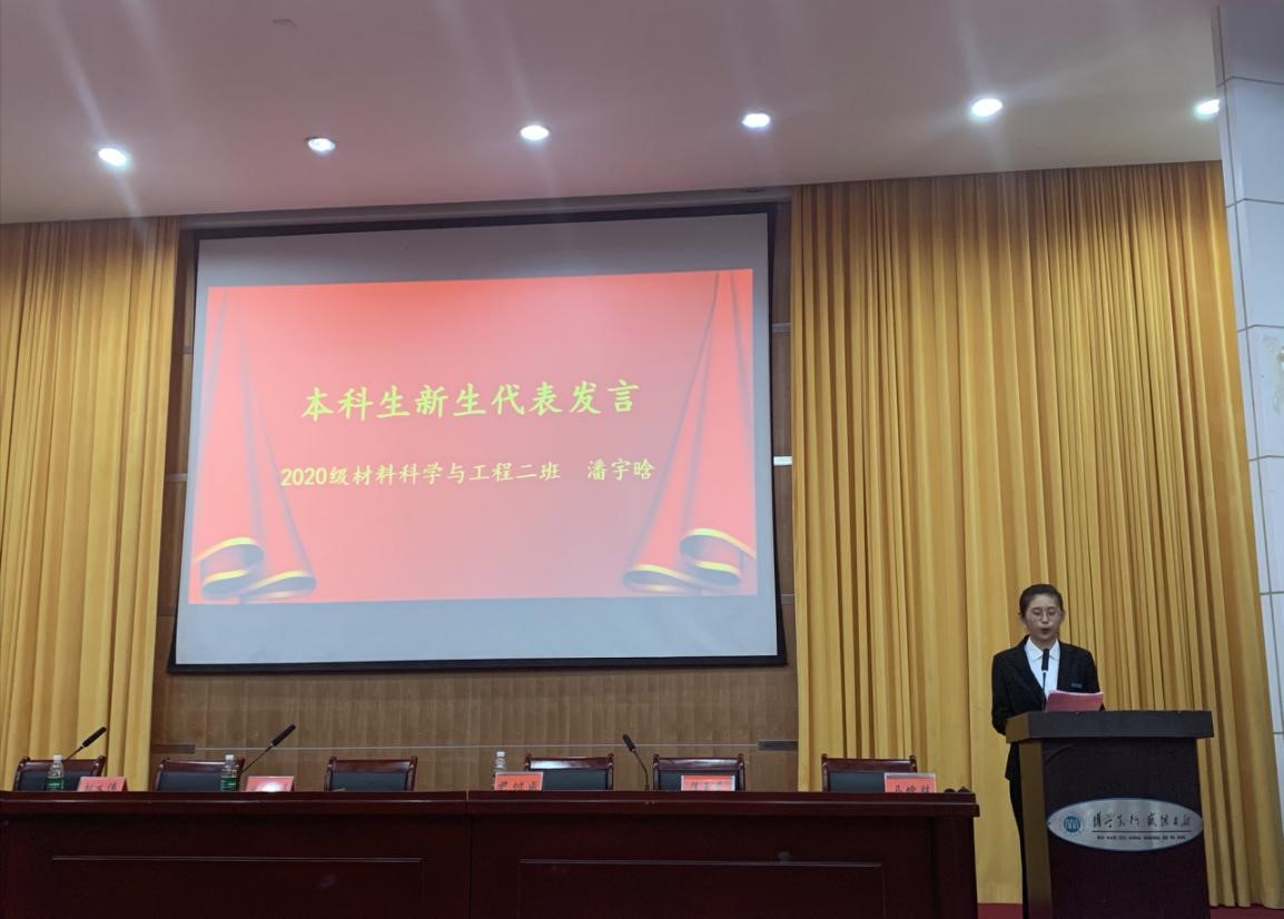 老生代表栗博希望新生在埋头苦读之余,能够将目光放远至全国乃至世界,关注国际材料领域最新动态和科学前沿,尽早确立远大理想,担负起中华民族伟大复兴的使命和责任。新生代表潘宇晗则表示将与20级全体新生一起,不负祖国重托,牢记肩上使命,将“爱国奉献、科研兴国”谨记于心,为中国材料新技术的发展进步做出贡献。