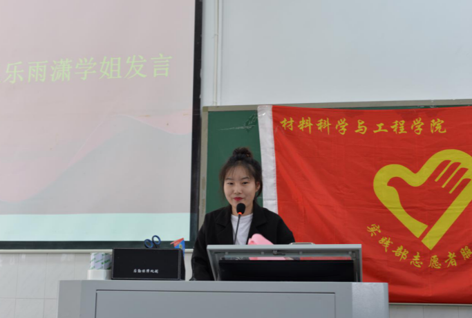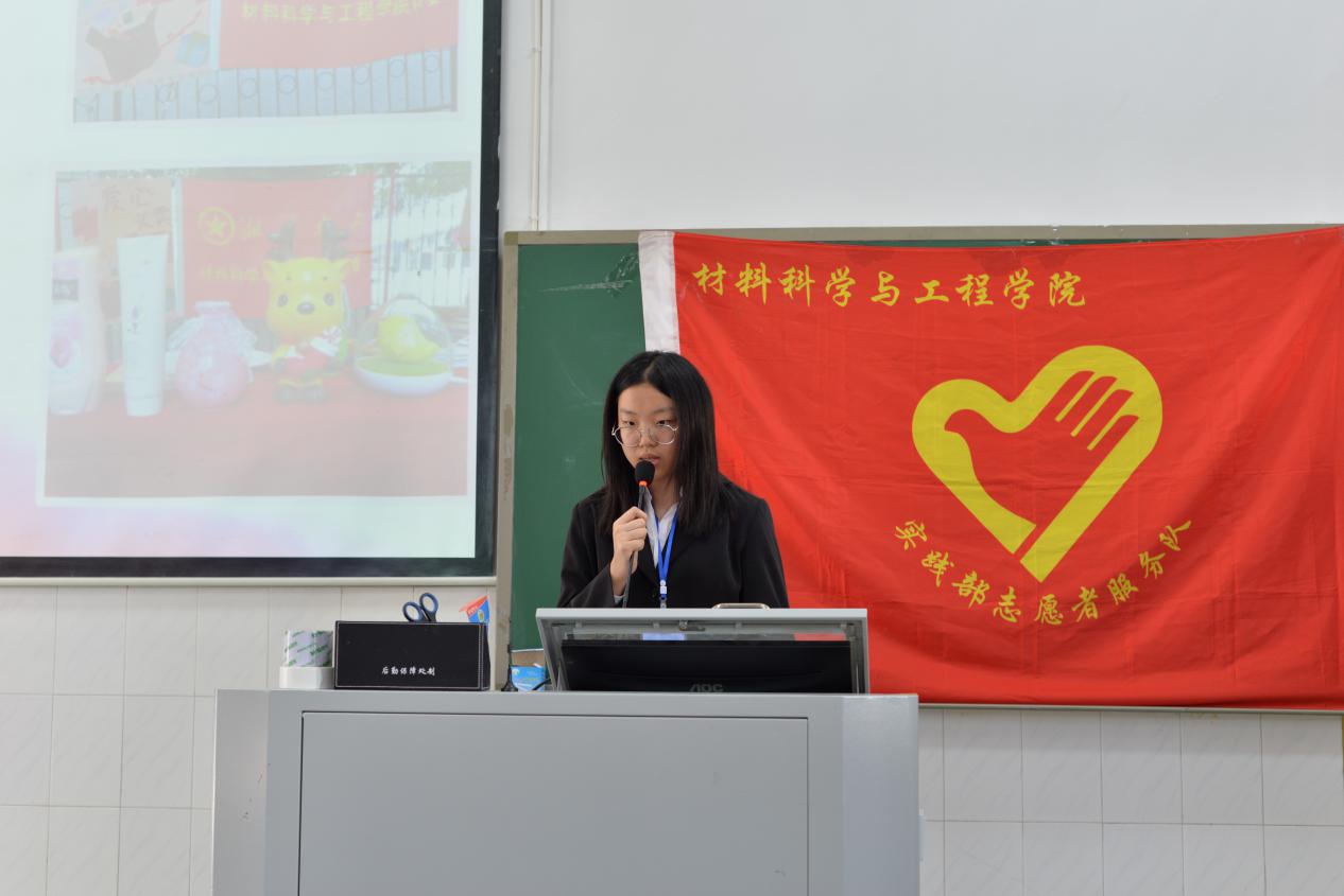 实践部部长陈家蓉在发言中详细介绍了以往的志愿活动:爱心护书图书馆整理活动让图书馆干净整洁、建立失招群让同学们找回心爱之物、筹办爱心义卖帮助困难家庭、探望孤巢老人为他们送去温暖和关怀……遵循过往的同时,实践部表示,他们一直在进行制度完善,推陈出新,也希望广大志愿者能够为建设更好的材料院青年志愿服务队贡献更多宝贵意见。