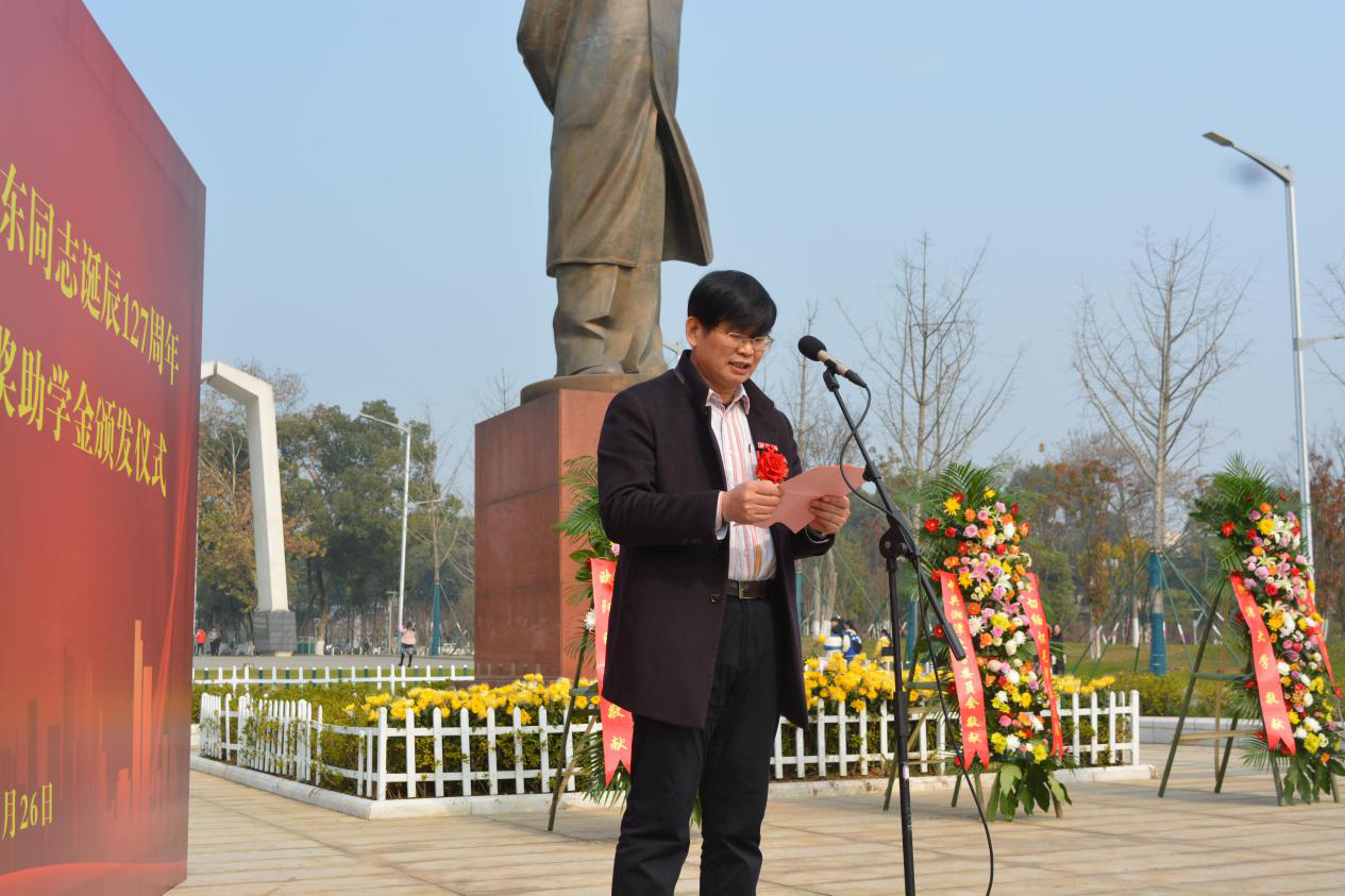 黄云清强调,“伟人之托”奖助学金的设立不仅是对一代伟人丰功伟绩的缅怀,也是对湘大学子感怀伟人期望,牢记历史使命的深切勉励。