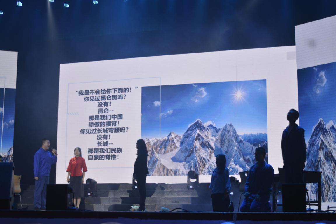 刘建平副董事长及四院老师联合演唱的歌曲《我和我的祖国》作为重量级节目最后登台。熟悉的旋律,深情动人的歌词引得全场观众不由自主地唱了起来。在全场观众嘹亮的“合唱”歌声中,晚会圆满落下帷幕。