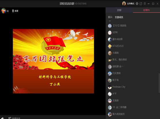4月18日上午,公司举行了第十二期团校培训线上第一二次授课活动。本次培训以“高举团旗跟党走”为主题,团委书记丁小燕线上授课,全体团校学员参加授课。