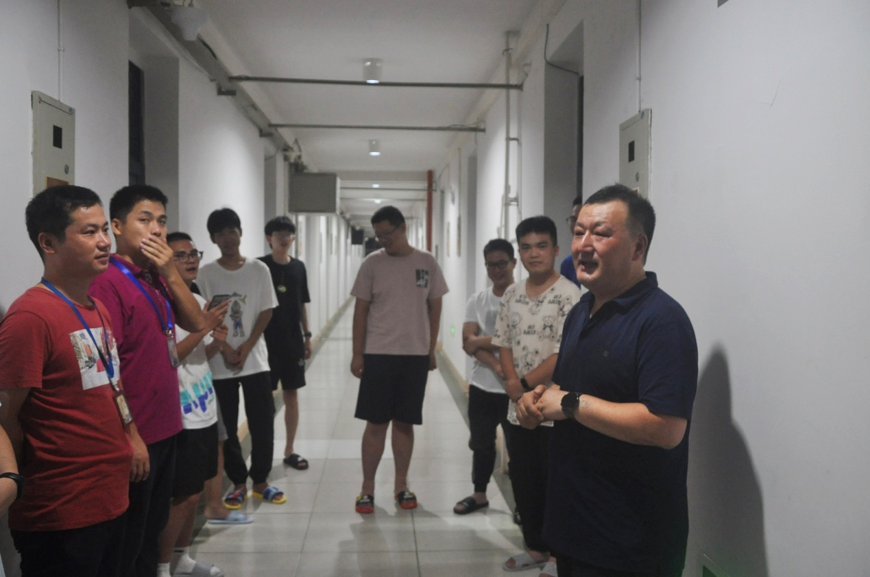 9月5日晚,为迎接公司2021级新生到来、了解新生对公司的适应情况,公司执行经理尹付成,副经理唐明华、孙立忠,公司党委副书记罗兆祥,党委委员谢淑红、齐福刚,院团委书记丁小燕,学工办老师杨露、曾坛、洪洋以及2021级各班班主任在团委员工干部的陪同下前往金翰林公寓六栋与九栋看望新生。