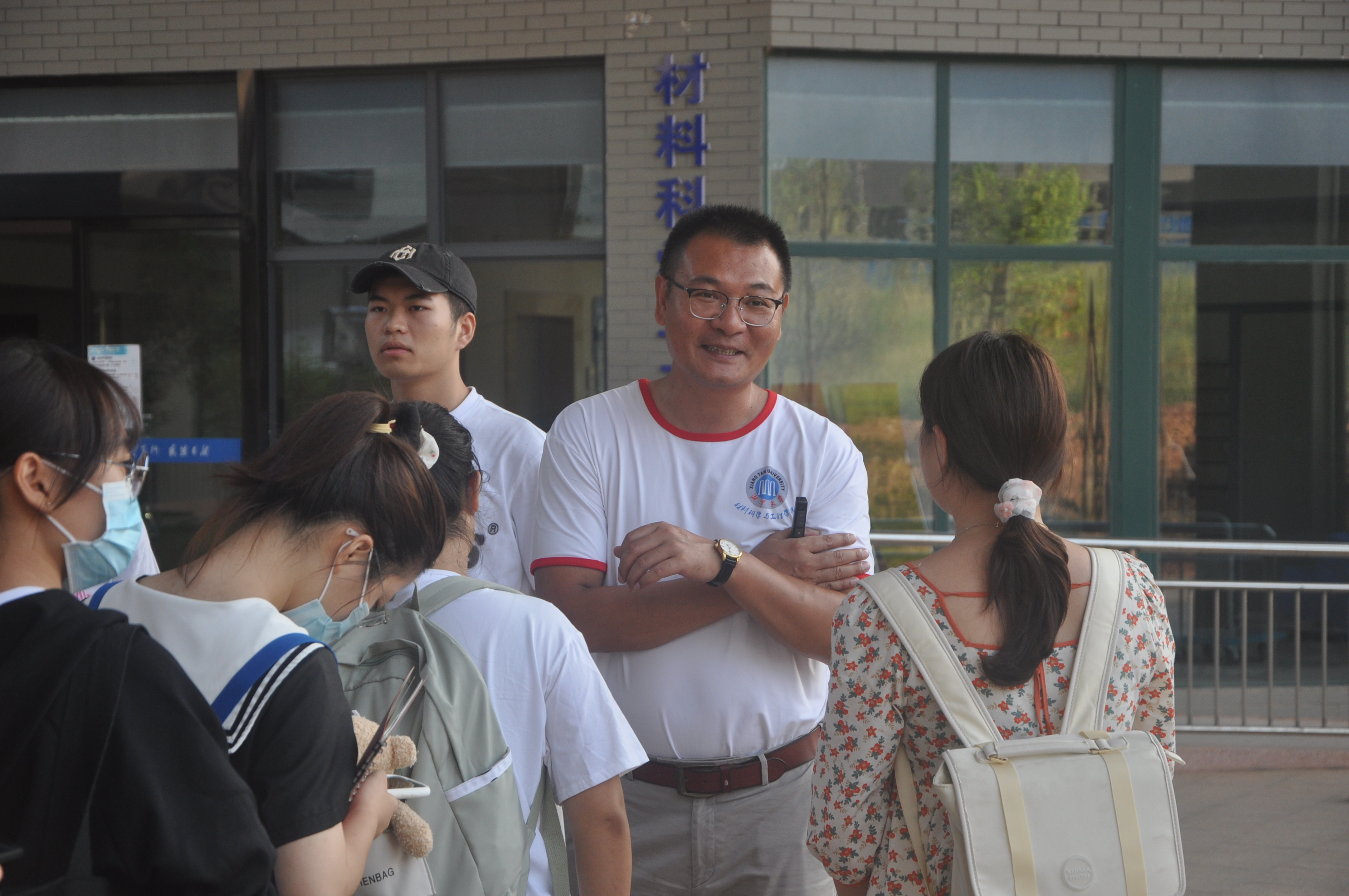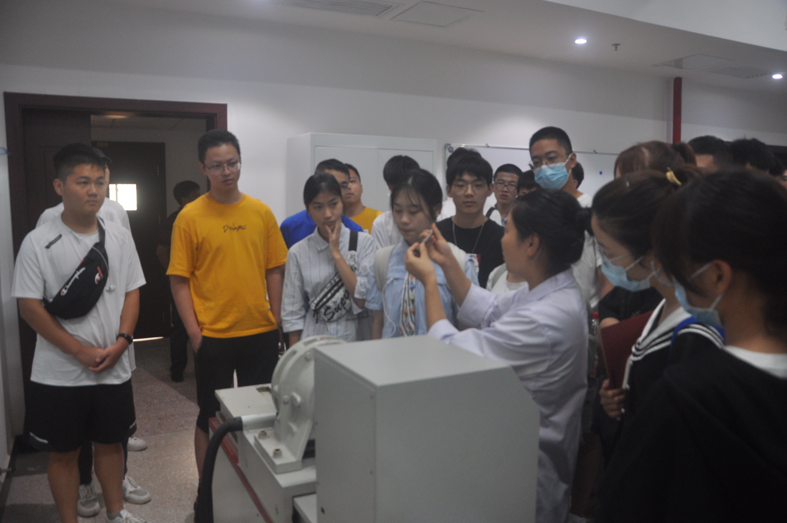 讲解结束后,同学们准备参观材料大楼和实验室,在大楼门口,罗书记叮嘱同学们要努力学习,不忘初心,向那些优秀老师、学者们学习,以后成为材料院的骄傲。同学们在材料大楼的实验室里跟随老师参观了各个实验仪器,他们认真听老师的讲解,并向老师提出自己的问题,积极与老师互动。
