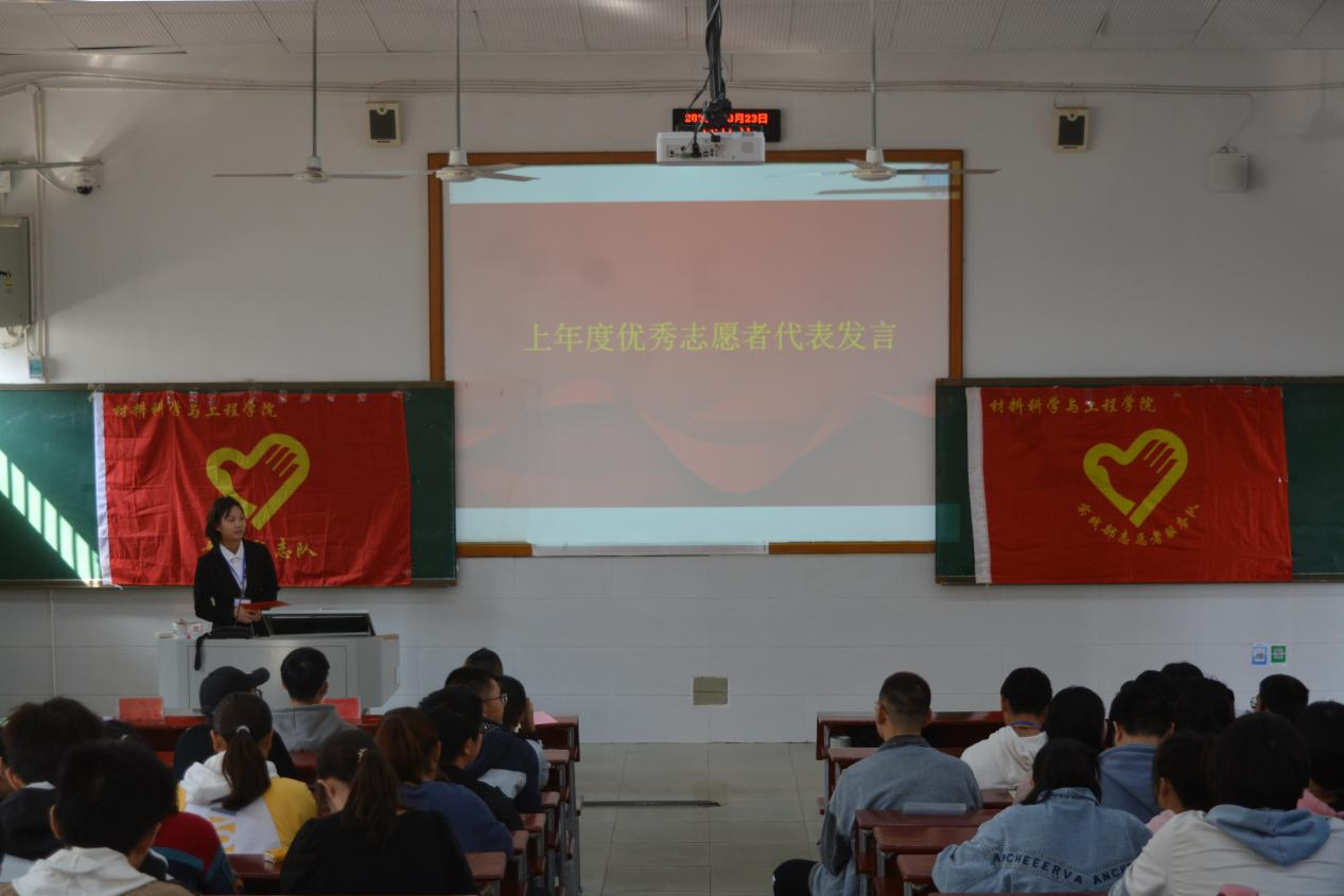 实践部部长吕思琪在讲话中介绍了各项志愿者活动与其中所含的志愿精神,说明了志愿者活动中各项规章制度与处罚机制并宣布了上年度优秀志愿者名单,并由黄程晨,孙震,吕思琪一同为上年度优秀志愿者们颁奖。