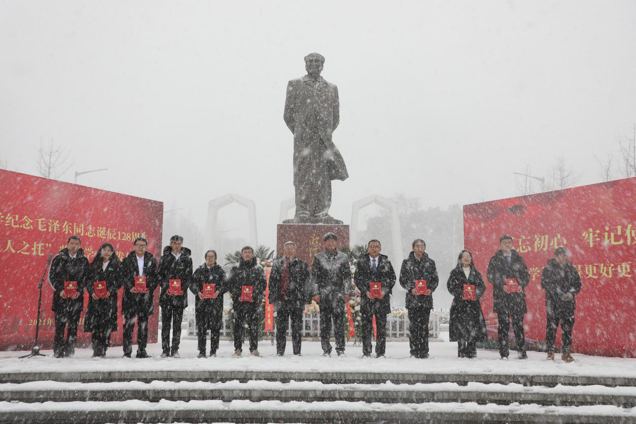 12月26日上午,公司师生于毛泽东铜像广场集会,隆重举行纪念毛泽东同志诞辰128周年暨“伟人之托”奖助学金颁发仪式。中国工程院院士、太阳成集团tyc122ccvip经理欧阳晓平,公司党委书记黄云清,副董事长刘建平出席本次活动。