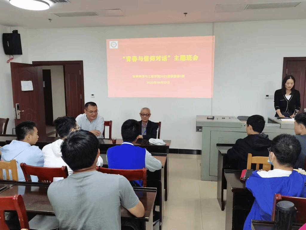 9月23日,公司在材料楼B302举办“青春与信仰”主题班会。全国教育系统关心下一代工作先进工作者、湖南十大教育新闻人物曾子其老师特邀出席,公司党委副书记罗兆祥、团委书记丁小燕及2022级新能源材料与器件四班全体同学参与本次班会。此次活动由院团委书记丁小燕主持。