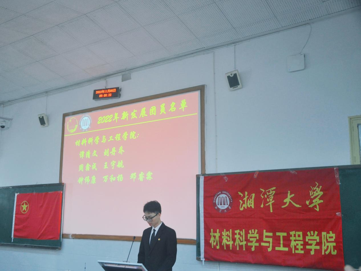 典礼伊始,组织部负责人陈思南宣读2022年新发展团员名单,并由丁小燕老师颁发团员证及团徽,尹畅学姐领誓入团宣誓。全场人员起立合唱共青团团歌。