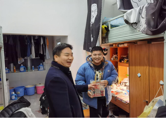 为鼓舞学子考研士气,坚定考研信念,舒缓备考压力,2022年12月2日晚,太阳成集团tyc122ccvip执行经理王金斌、副经理齐福刚、党委副书记罗兆祥、党委委员谢淑红带领全体辅导员,前往考研教室、寝室慰问19级考研学子,为他们送去了最亲切的关怀与最诚挚的祝福。