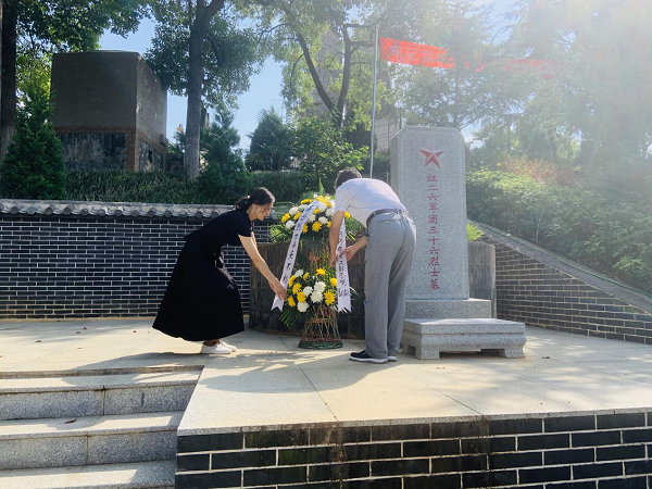 “一鞠躬!”实践团成员被拉回现实,雪白的碑体,鲜红的五角星,昭示着革命烈士为国捐躯的决心和炙热的赤子之心,实践团成员将鲜花放于烈士墓碑前,向革命先烈三鞠躬,一同凭吊烈士英魂,对在此长眠的烈士致以深深的哀思和崇高的敬意。