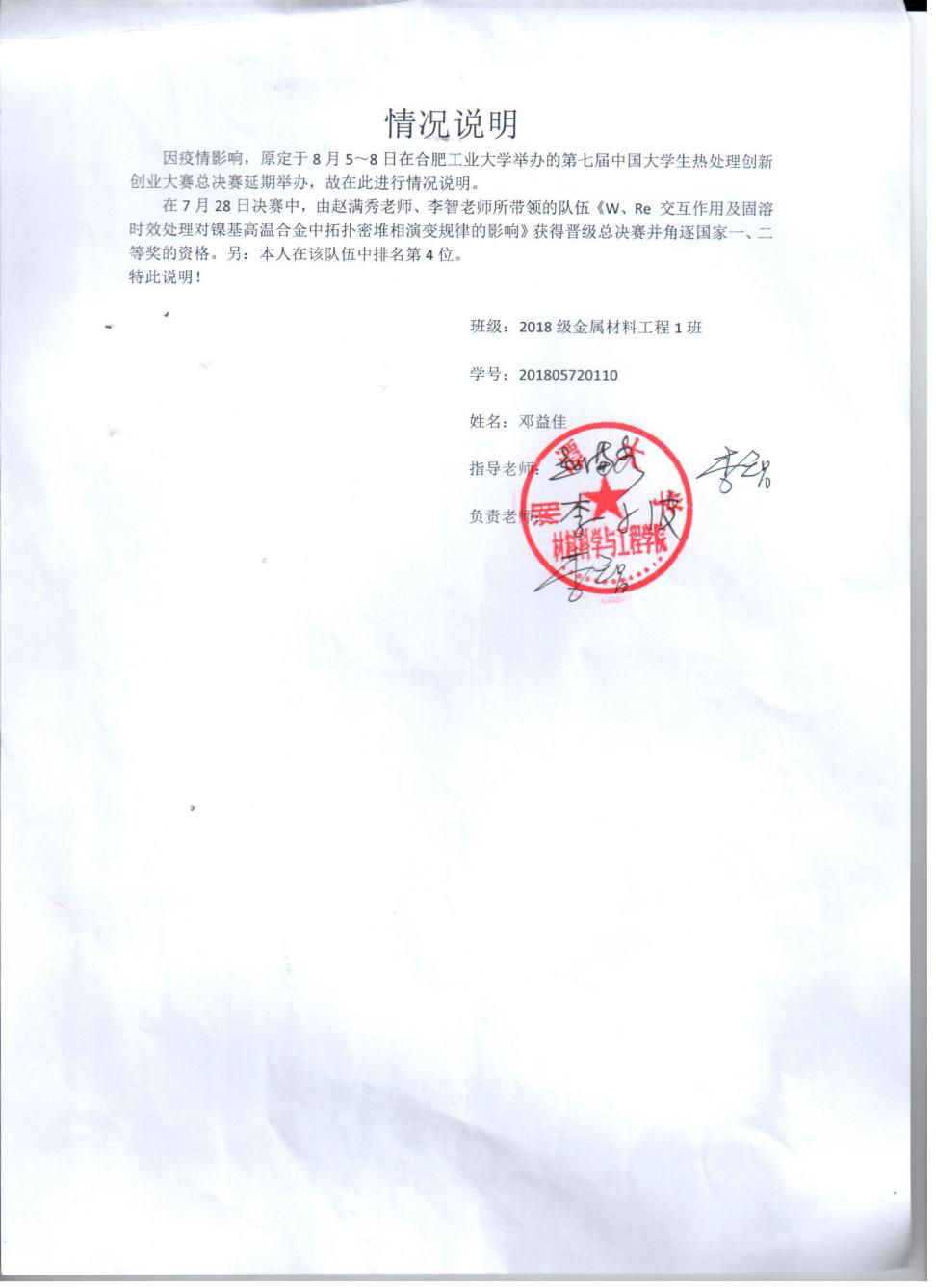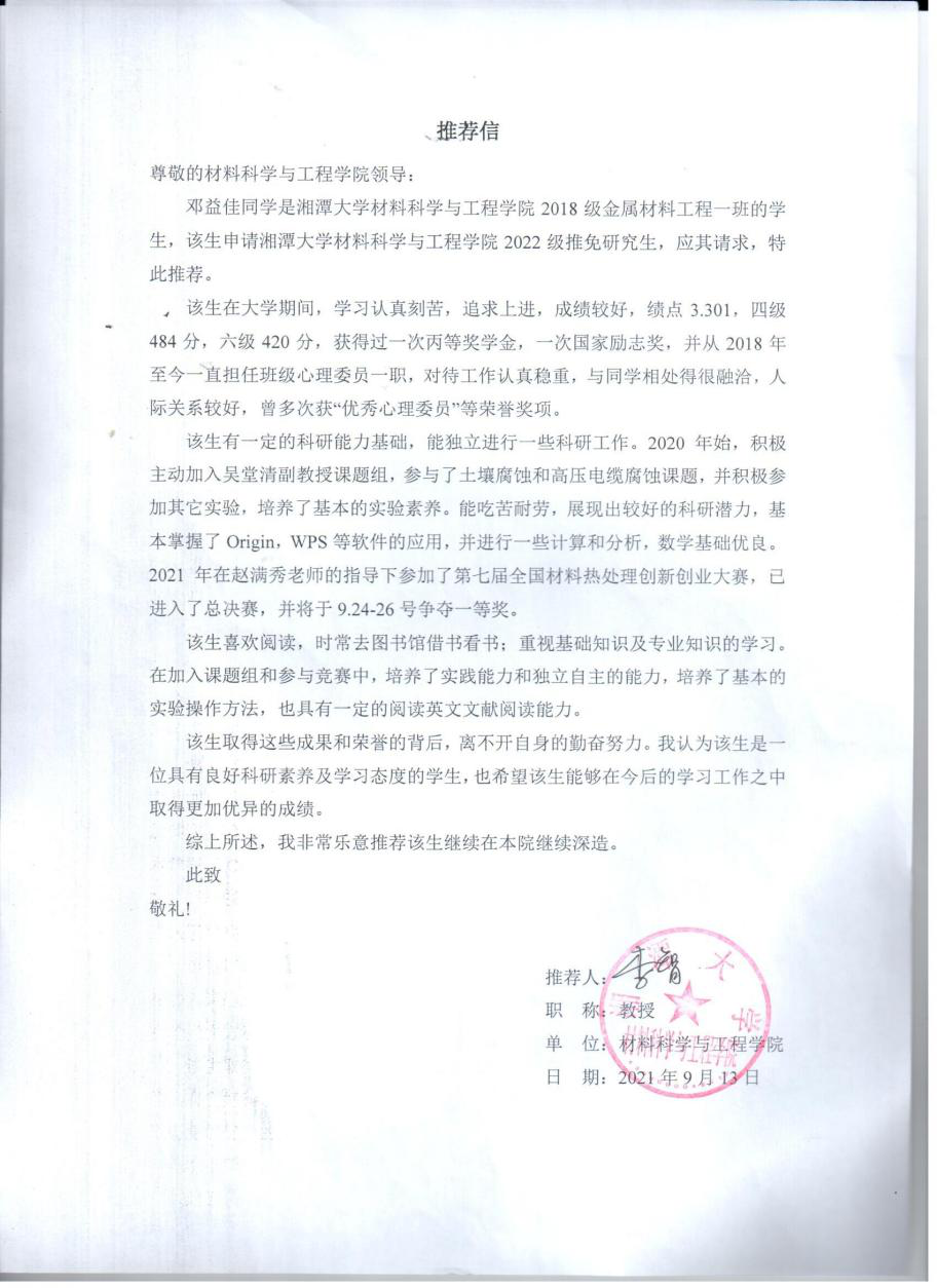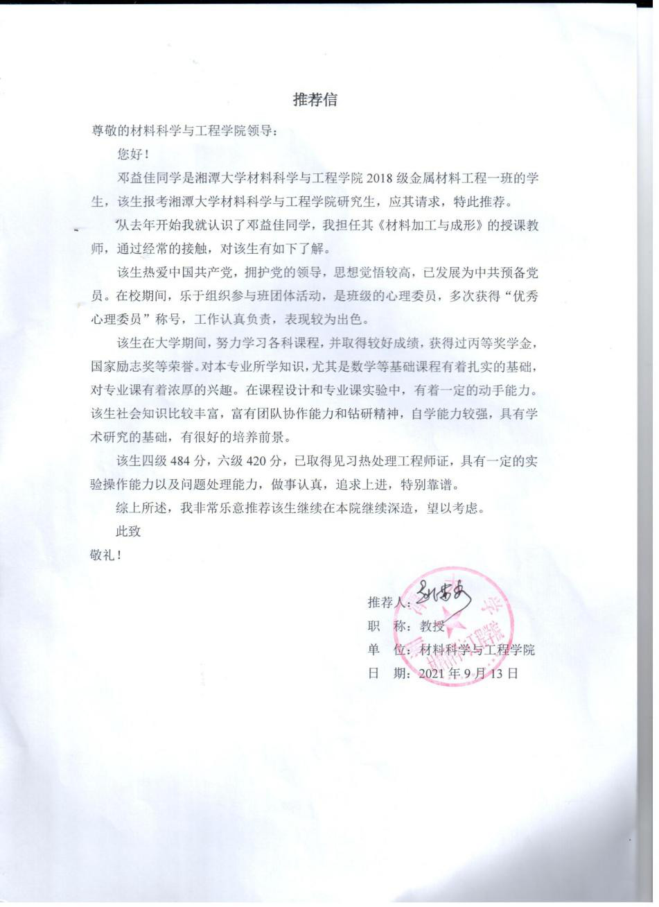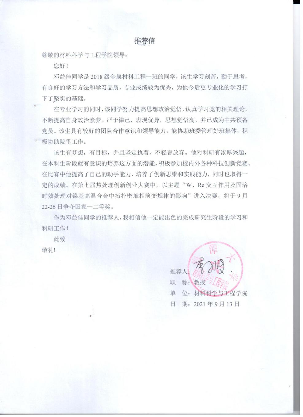 邓益佳先进事迹及教授推荐信