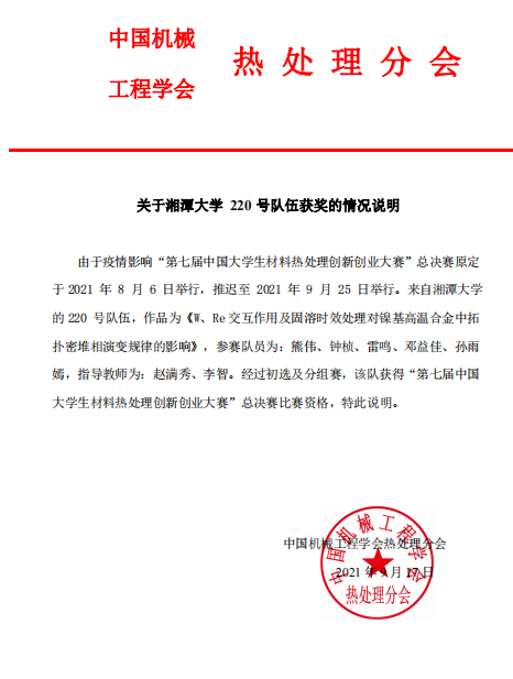 第七届中国老员工材料热处理创新创业大赛国家二等奖 |
