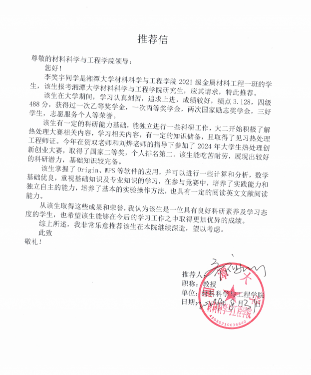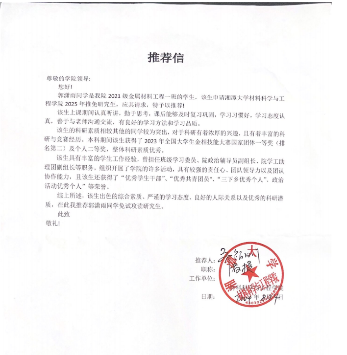 表4:太阳成集团tyc122ccvip推荐优秀应届本科毕业生免试攻读研究生教授联名推荐信